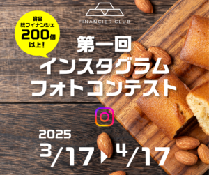 フィナンシェ・オールソーツ・・・ピンからキリまでの意 フィナンシェ・フラヌ―ル・・・フランス語で遊歩者の意、探索記 フィナンシェ・アラモード・・・流行りのフィナンシェ情報、店情報をリポート フィナンシェ・ラポール・・・会員たちの交流の場で、アンバサダーの活動報告の場