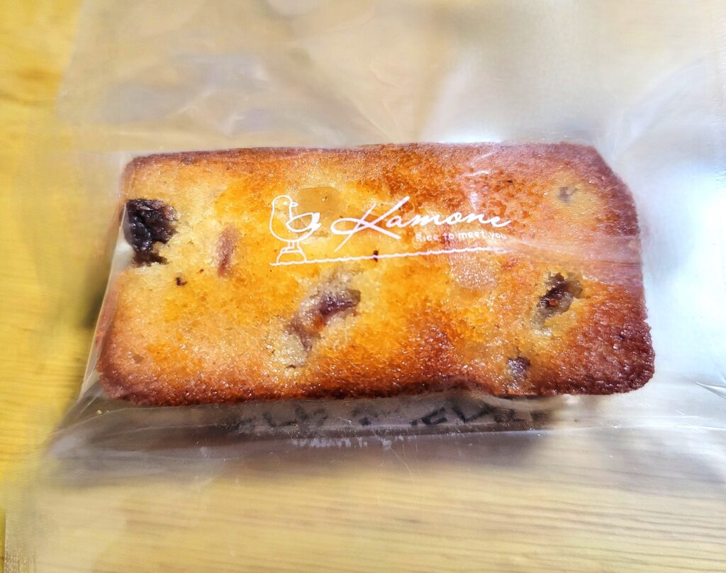 その中の特産品販売所のスイーツコーナーにこのフィナンシェが並んでいました。フィナンシェというより、色んなドライフルーツが入っているとこともあり、アーモンドプードルの風味を楽しむというよりは、どちらかといえばフルーツパウンドケーキといった方がいいかもしれません。