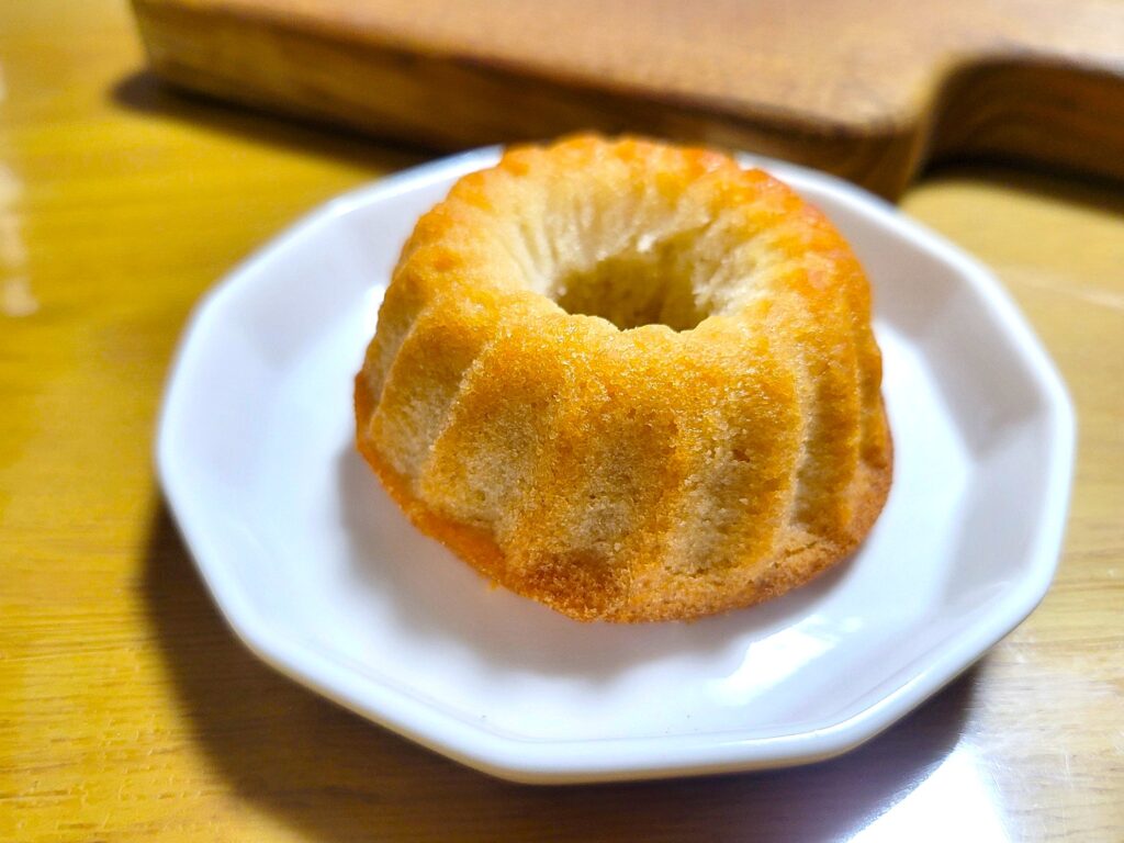 「国立京都国際会館」は地下鉄「国際会館駅」の3番出口から「グリルじゅんさい」を目印に南に歩くと、「パティスリー ラ・リシェス」の可愛い佇まいが見えてきます。パティスリーですからフィナンシェはもちろんあるだろうと、店内に入ったらショーケースの一番左端に並んでいました。でも形を見てびっくり、フィナンシェ(※金塊の意)ではなくクグロフではありませんか。一瞬カヌレじゃないかとも思いましたが、目をこすって見直してもクグロフにしか見えません。でもしっかりフィナンシェと謳っているので、疑いながらも買ってみることにしました。