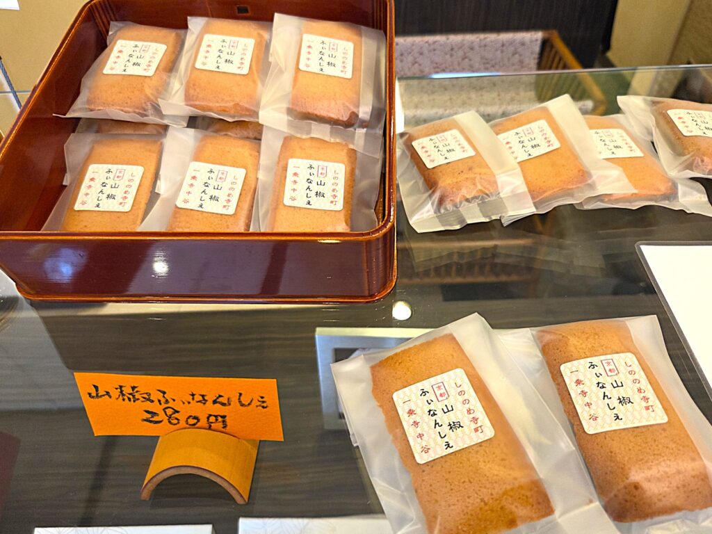「山椒ふぃなんしぇ」1個280円、「山椒めれんげ」は500円 和洋菓子「一乗寺中谷」と共同開発にて誕生した逸品です。